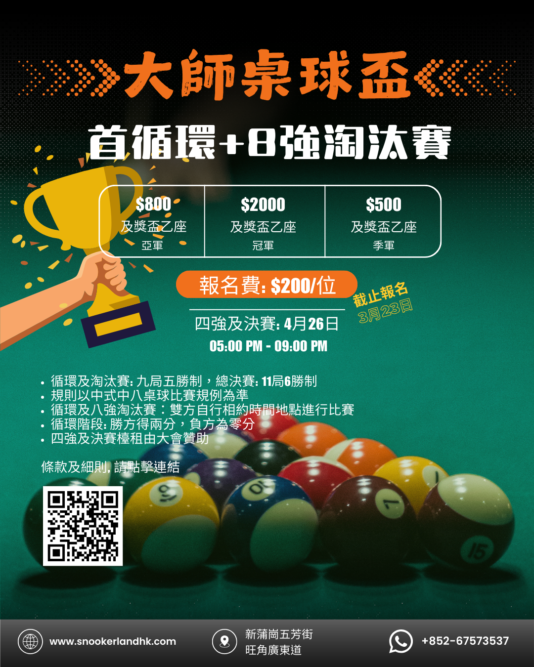 2026年度春季Snookerland 桌球天地大師盃比賽賽制