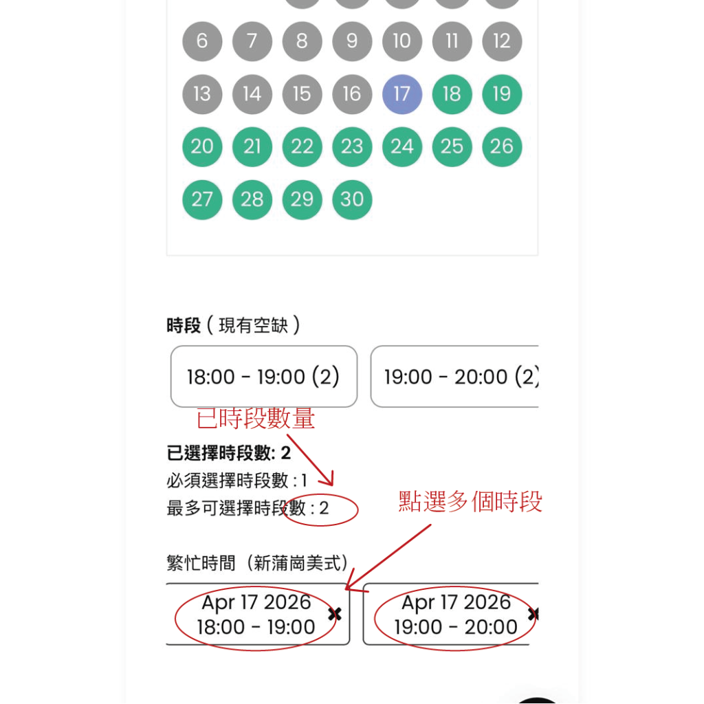 一個時段為一張桌球台的一小時預約,如欲購買多個時段,請選擇時間段後按「申請」鍵,逐一加入購物車。